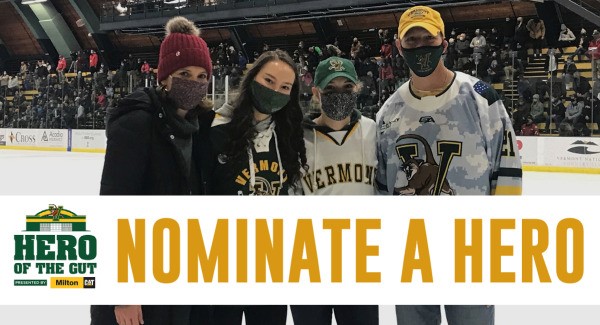 Heroes will receive tickets to their choice of a UVM Men’s or Women’s Hockey game, exclusive bench access pre-game, optional in-venue recognition and a token of appreciation from UVM Athletics.