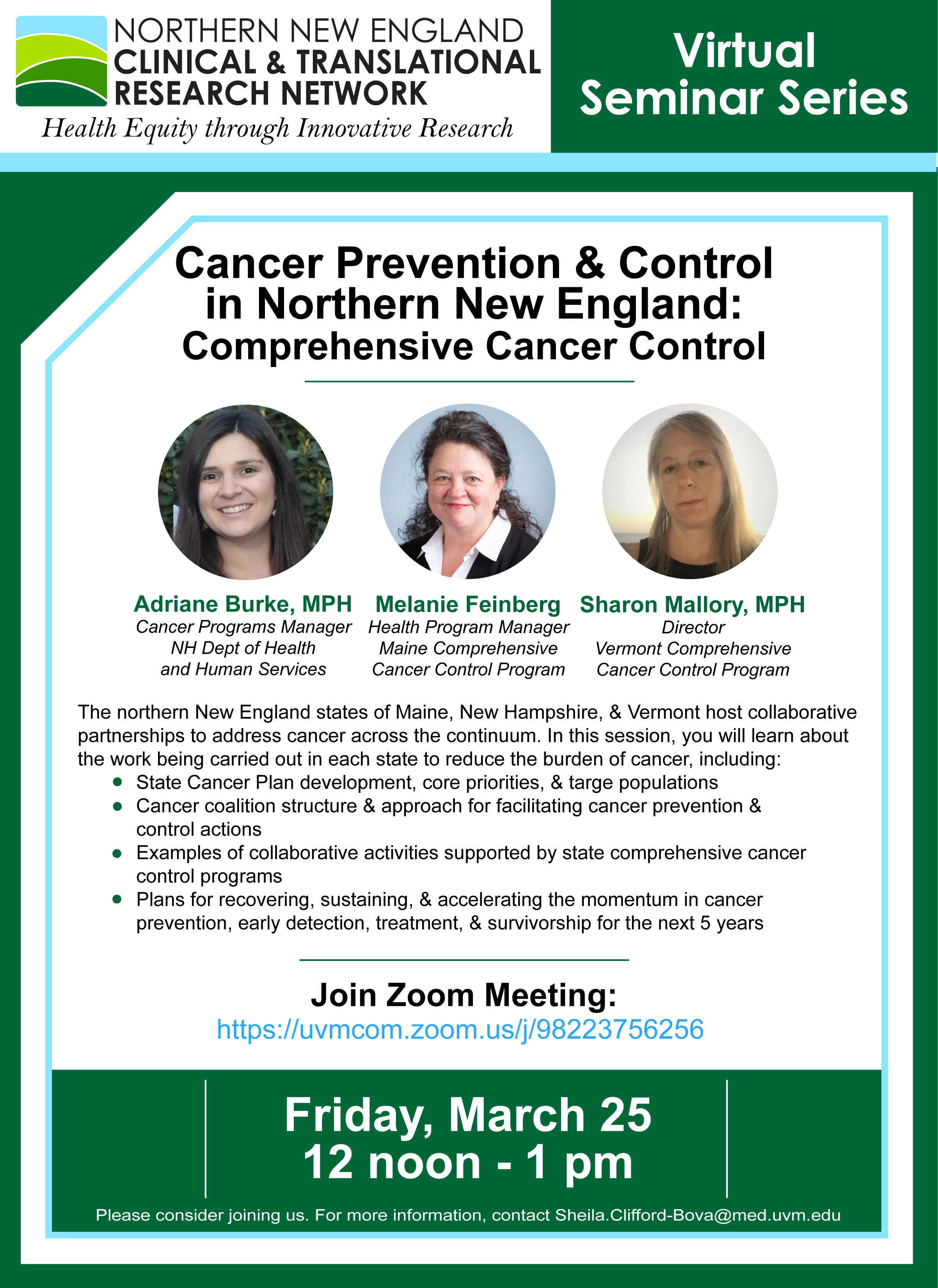 This installment of our NNE-CTR Seminar Series focuses on the Cancer Plans for Vermont, Maine, and New Hampshire. Learn about: